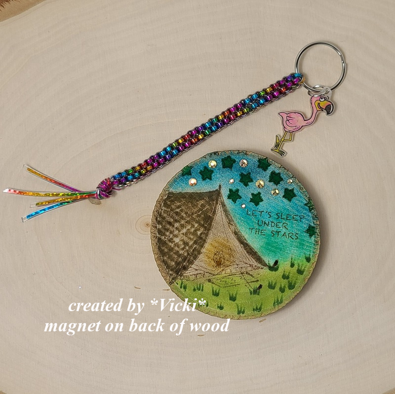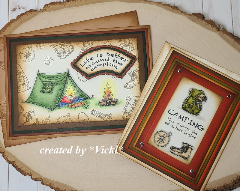 Two gorgeous cards Vicki!! I love the Washi tape designs and adorable images, love how you colored that sweet cat! Awesome camp projects too, that key chain is sooo cute!