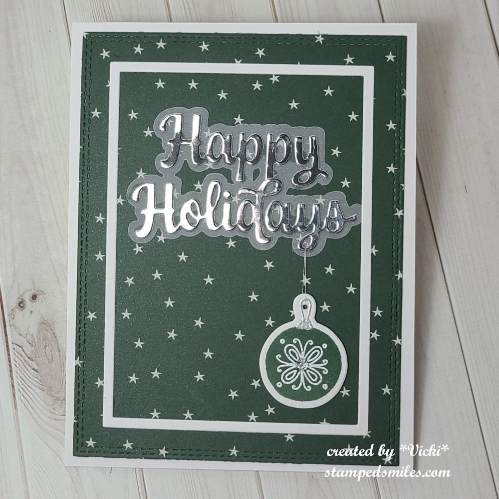 This is a Christmas card I had made last month using some Scrapbook.com products that I wanted to try out! If you take a look at THIS POST, there is another card version using this same ornament stamp set. I had gotten the Holiday stamps and dies plus papers and other die cut sentiments in a bundle.