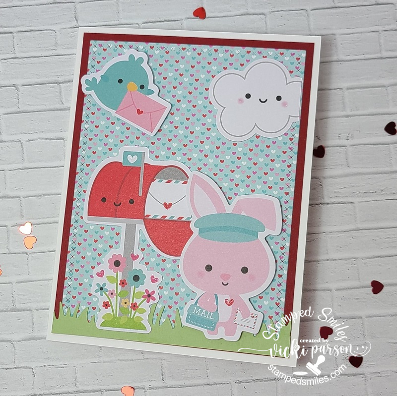I’m not only using this same stamp set for both of my projects today, but I wanted to point out that this one above is not a card, but it’s a gift card envelope that I’ve created using the Inky Stamper Mini Envie Die. I love this die for quickly creating the perfect sized envelope to fit your gift card inside, but Chelsea also comes up with fun mini cards in a lot of her kits that work great for tucking inside this envelope too! (There’s a brand-new kit in the store that has just came out using one of the brand-new stamp sets making a mini card in her class.) I also wanted to point out that this die can be cut from one of the 6×6 Doodlebug paper packs sold in the store too!