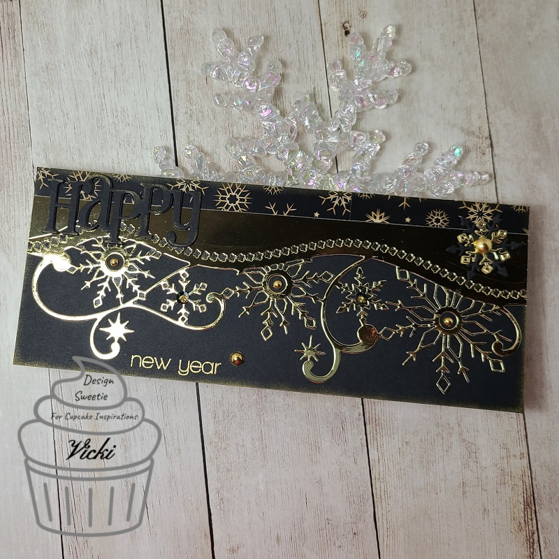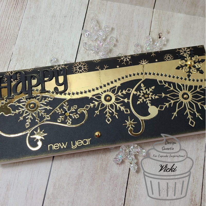 There’s nothing quite shinny or sparkly than New Year’s Eve! I always think of the ball dropping on Times Square in New York, but it also had me thinking of a disco ball that is very sparkly. Found this image online and printed it out. Cut it out with a circle die and then added a bit of colored shading with my markers in grey. I took a sponge to add glue to the entire ball and then covered it with chunky glitter. I added some sparkle images and filled them with silver glitter and then die cut the numbers and glued them over top of the ball.
