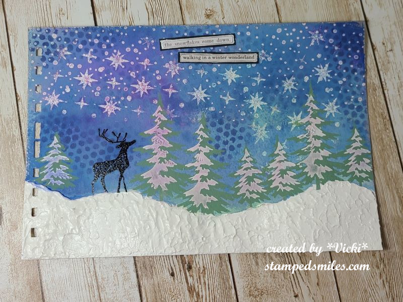 The last Saturday of the month (AND THE YEAR!) brings us to the monthly Art Journal Page collaboration with my crafty friend, Carol (from Crafty-Stamper)! We get creative trying to use up our never-ending stash piles along with a prompt for each month. I know she always has great inspiration to share, so please check out her blog too! Here’s my AJ page with the “SMASH OUR STASH” December prompt of “Previous Prompt”: