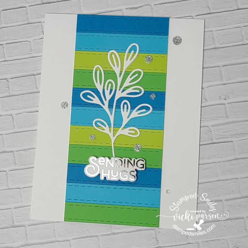 For the background: I used a 5.5″ x 8.5″ of canvas heavy weight paper with the pre-punched holes at the top made with my Bind-It-All Machine and painted over it with some Crisp Blue Americana acrylic paint. Once dry, I sprayed some silver metallic over it. (You can see some of the shine at the top.) I didn’t know how busy looking the fabric squares would look, so I decided to stop there.