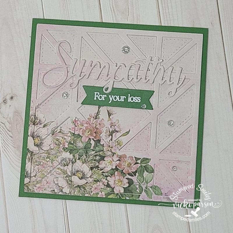 The poem was a memory that I had during a vacation time with my husband when we ran into a memorial with a park bench and this poem was engraved with birds around it. I looked it up and printed it out on my computer over a parchment paper. I ripped it out and sponged the edges. I also printed out the “forgotten” at the top and cut it out in a banner. The poem was popped up with foam tape over the fabric squares. “Do Not Stand at My Grave and Weep” – by Mary Elisabeth Frye