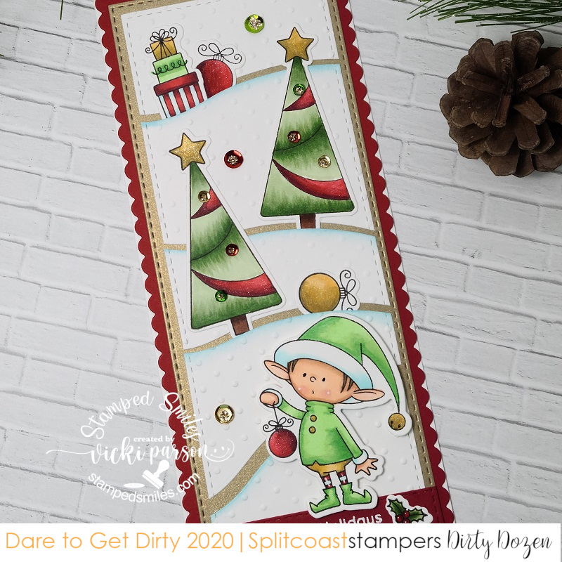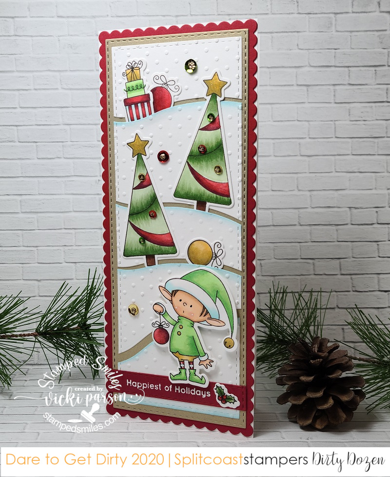 And lastly using this same stamp set, freebie papers, sequins mix and color theme, I made a Christmas card with it. I took the little star image from this stamp set and stamped it several times, colored it in and fussy cut several of them out. It’s not that bad when you’re cutting and watching videos while you do it!