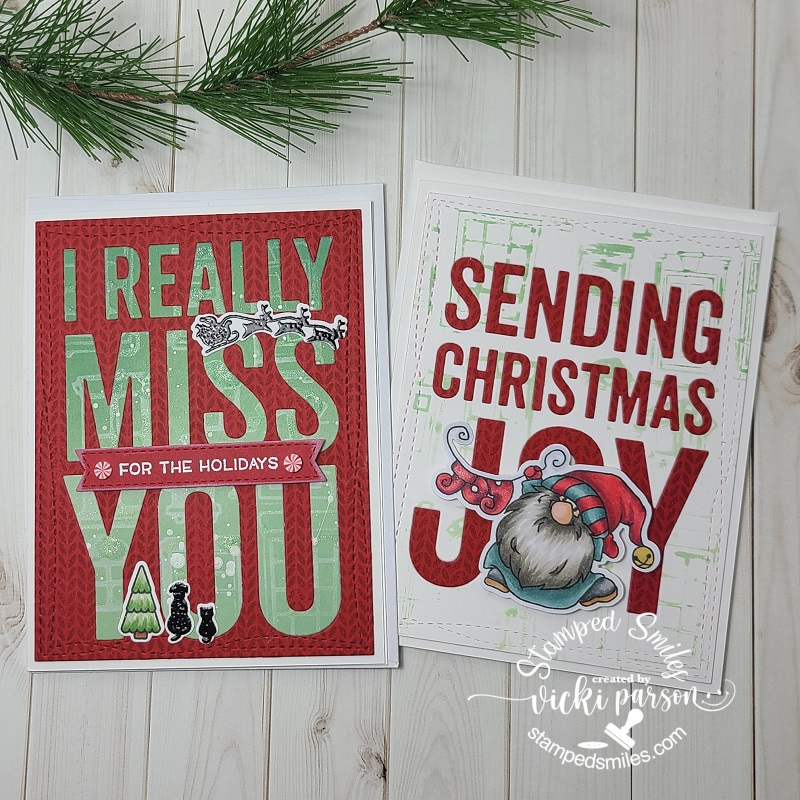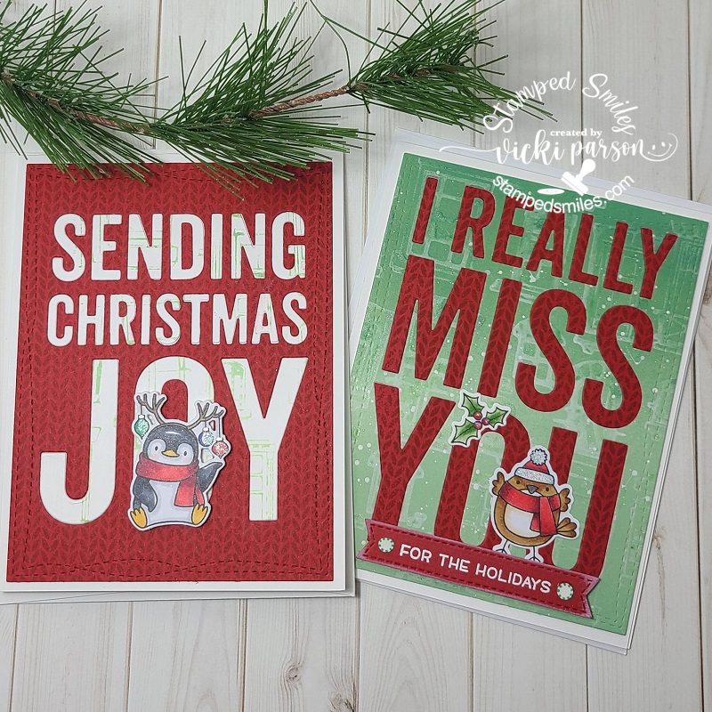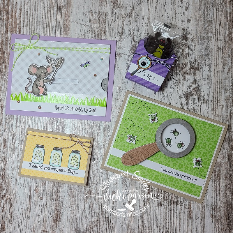 Here’s a closer look at two of the cards I made from the set so that you can see how the card opens up and the greetings on the inside of each card. (Sentiments come from Taylored Expressions.) You can also see the coordinating envelopes next to them with the matching critter stamped in grey ink.