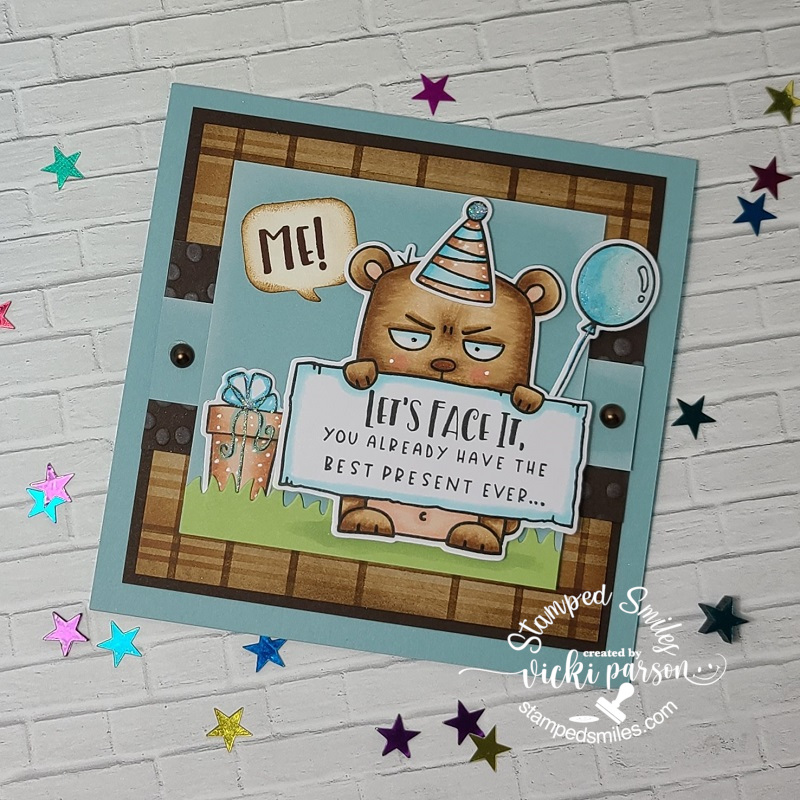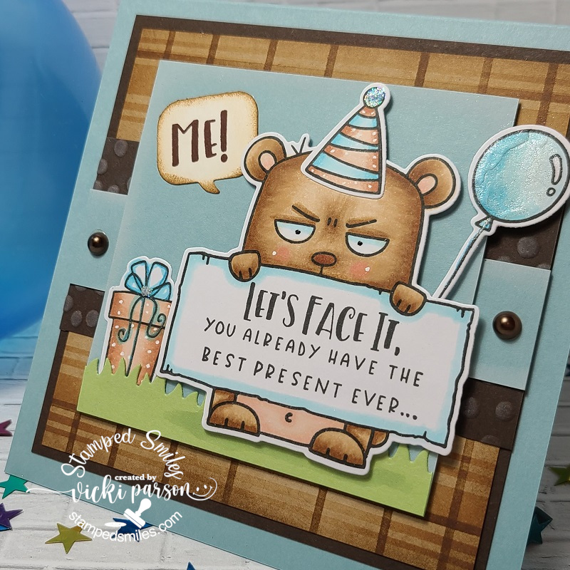 I have to chuckle at this card for my son’s birthday as he is a fun-loving jokester that will appreciate this along with the fact that it’s a bear image. He was nicknamed “Bear” in his school years, so I thought these Big Grumpy products from Taylored Expressions would work perfectly for this! I’ve also used the Big Grumpy Birthday stamps to go with him along with the other products used in my video above.